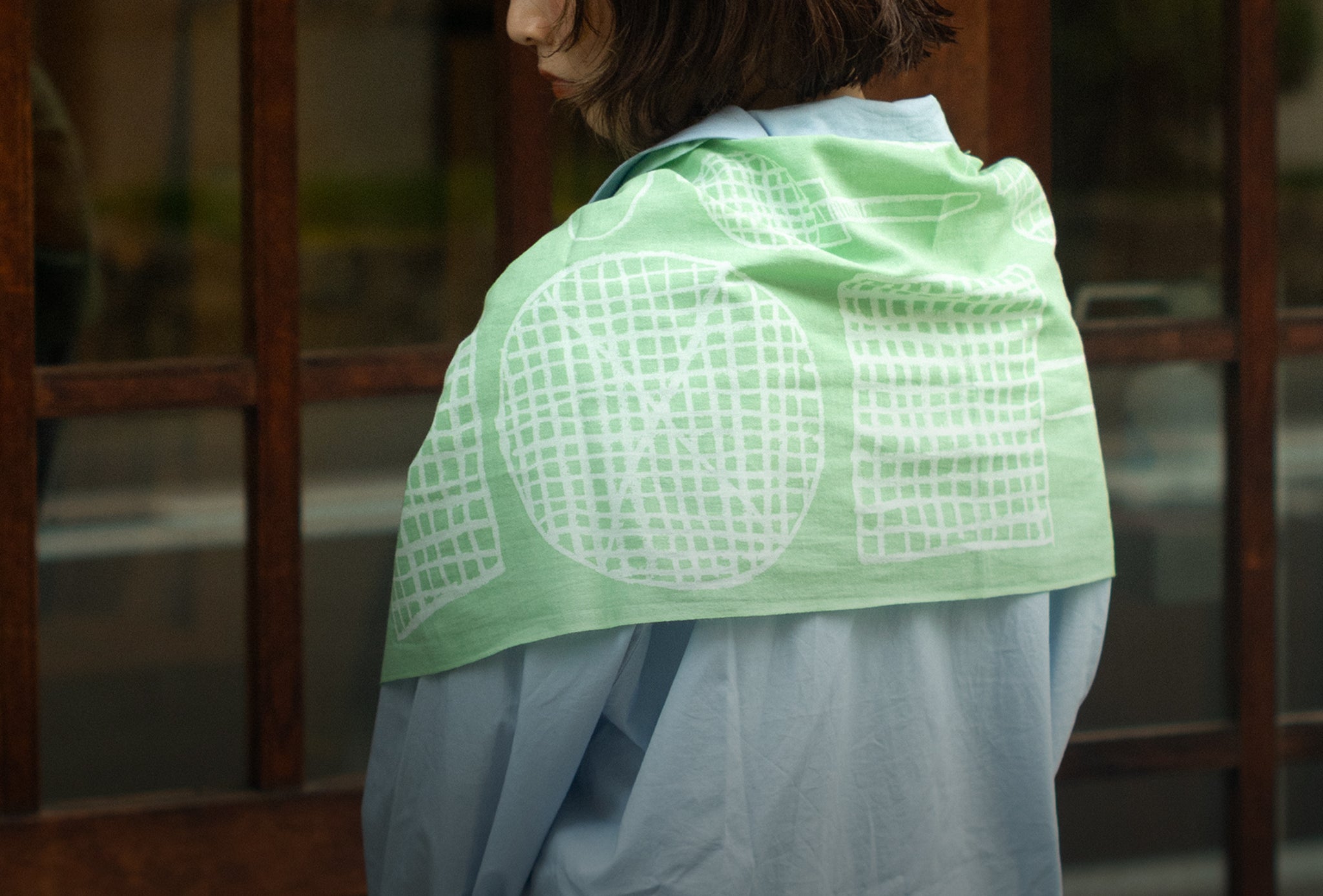 TOCHU 横段絞り_ストール(うぐいす)