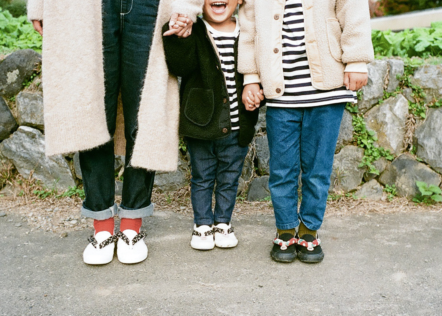 伝統の花緒をあしらったHANAO SHOES Kidsは、和装にも洋装にもなじみ、足もとから晴れやかな気分を添えます。