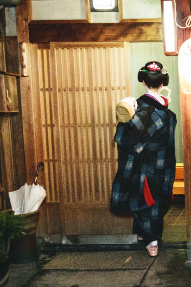 We want to see beautiful maiko wearing full-body traditional costumes even on rainy days, and we want them to carry umbrellas that are colored by the streets of Kyoto.