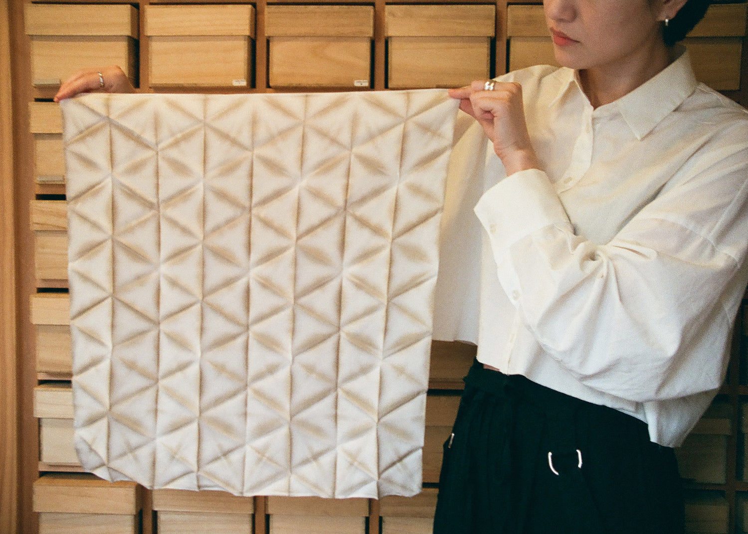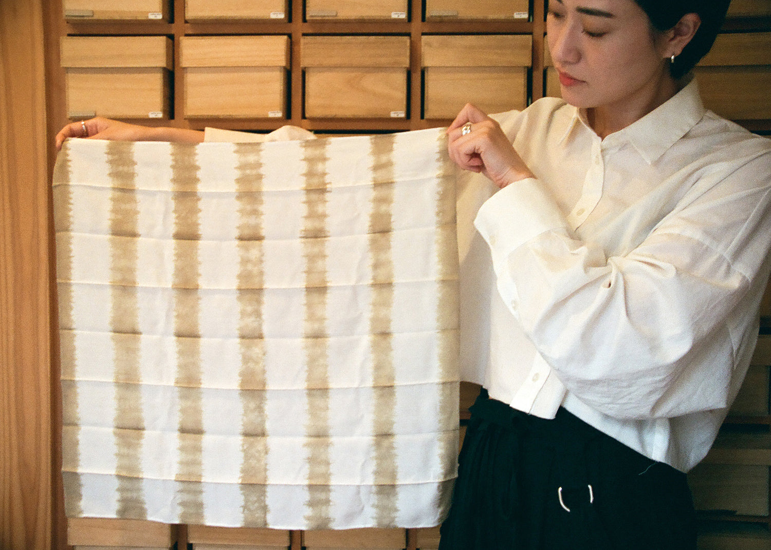 TOCHUには、絞り染めの技法が使われています。布の一部を縛ったり、挟んだりすることで、その部分のみを防染し、模様を作り出す染めの技法のことです。
