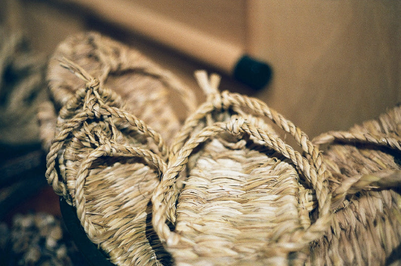昔の人は草鞋がダメになったら、そのまま道に脱ぎ捨てたそうですがこれは微生物によって分解され、自然に還ります。