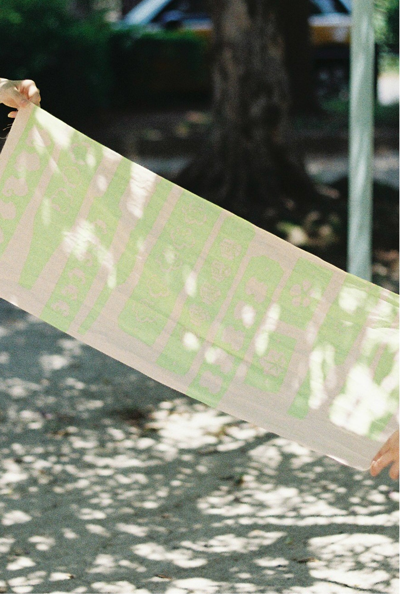 伊原染工によって、25m台で手作業で染められています。 機械やインクジェットで染めることがほとんどになったこの時代に手作業で染めており、この手ぬぐいの染め上がりの重厚感は貴重なものです。