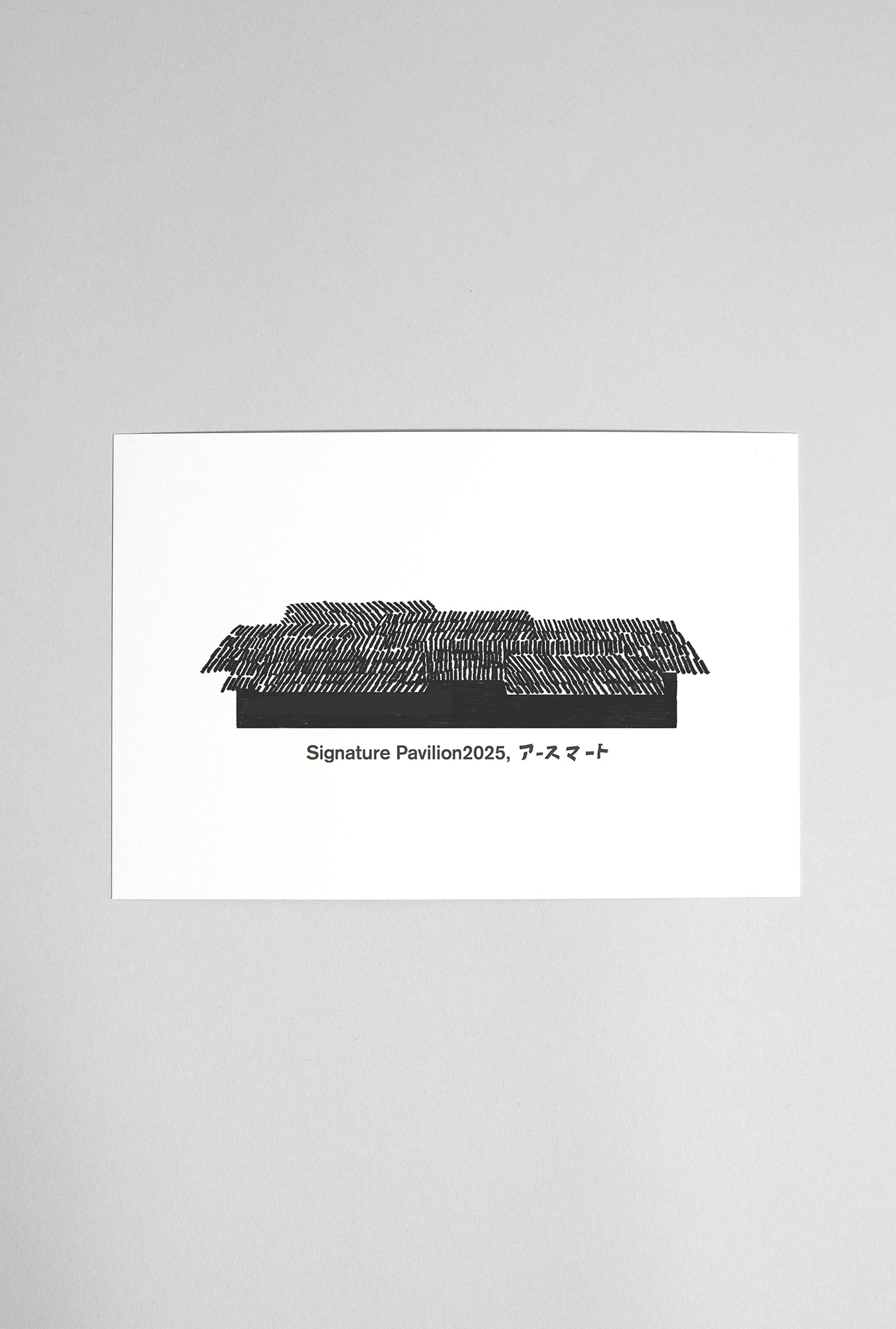 隈研吾氏が設計を手がけた「EARTH MART」の外観シルエットのポストカードです。