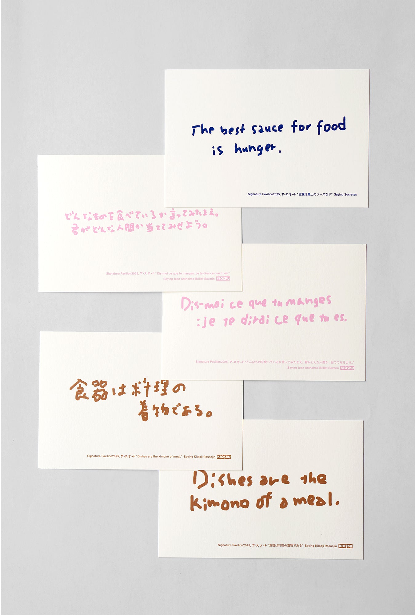 偉人の「食に関する名言」をプリントしたポストカード。5枚セットでお届け。