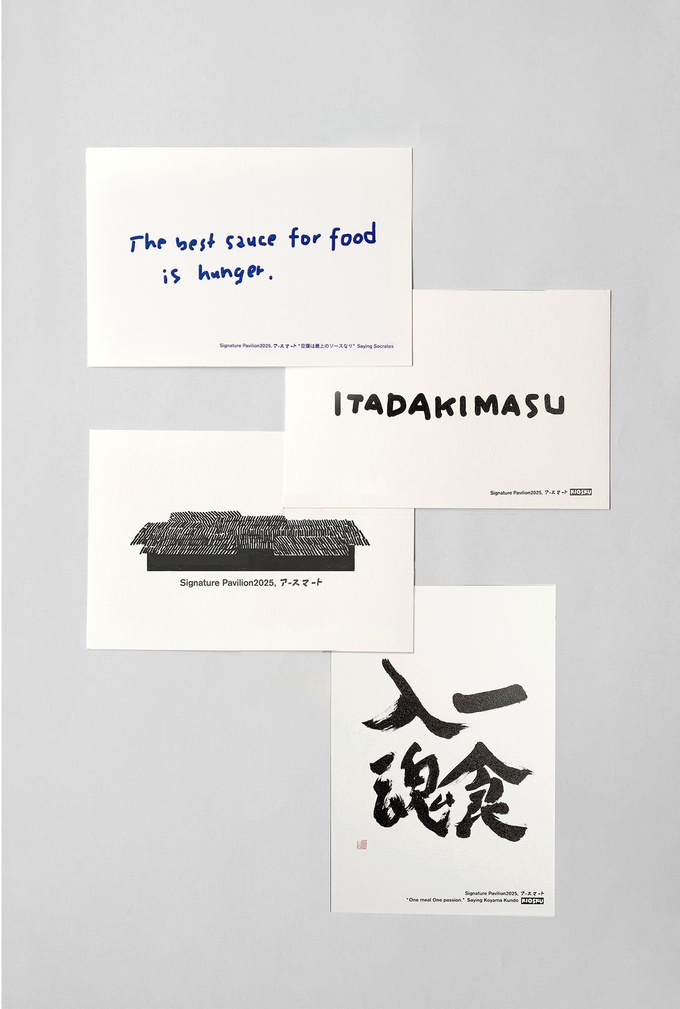 偉人の「食に関する名言」をプリントしたポストカード。4枚セットでお届け。