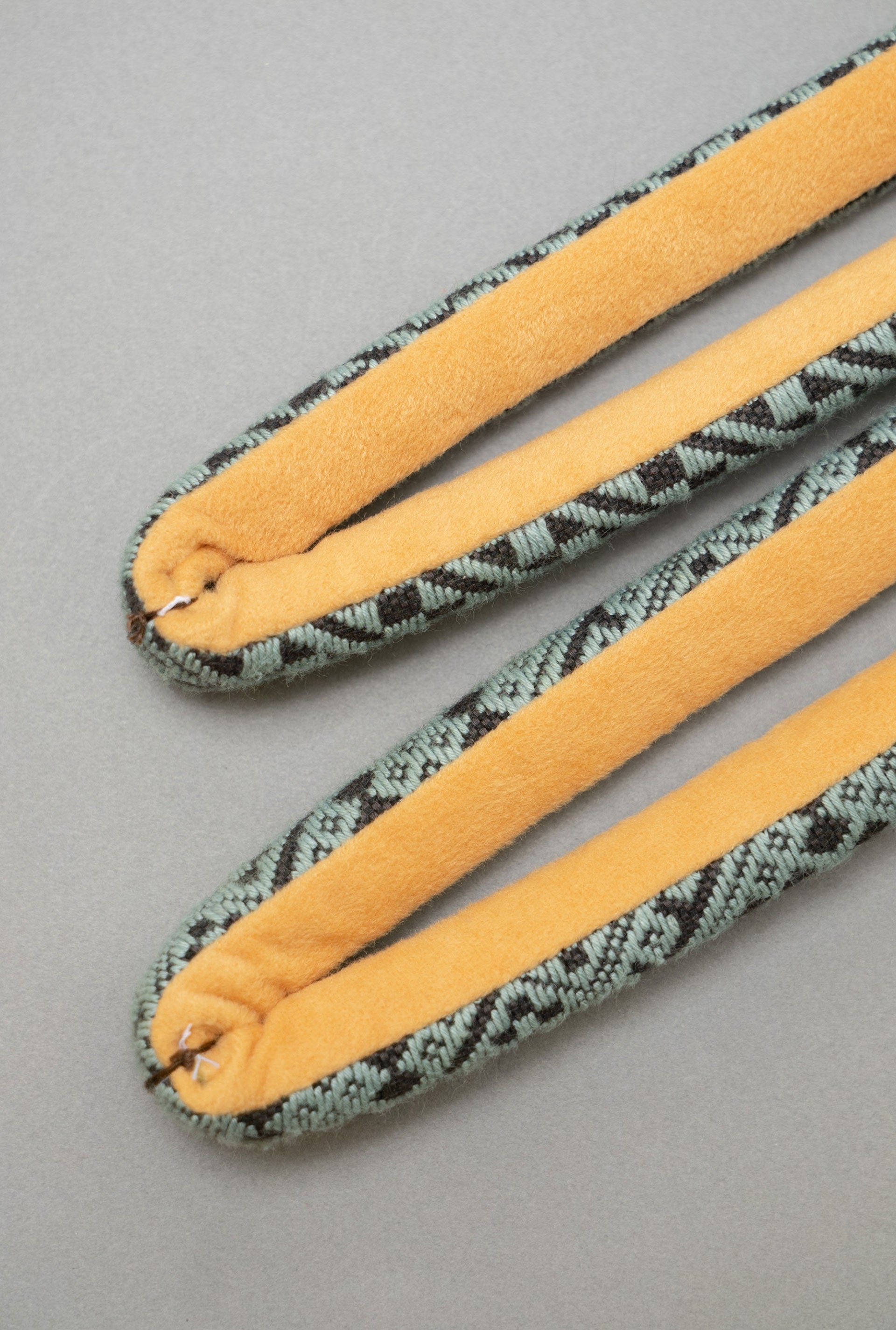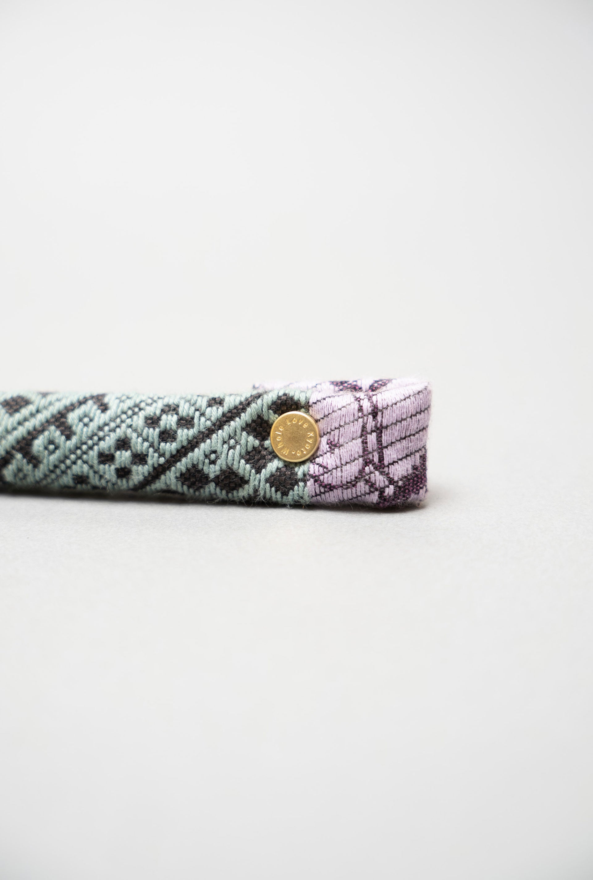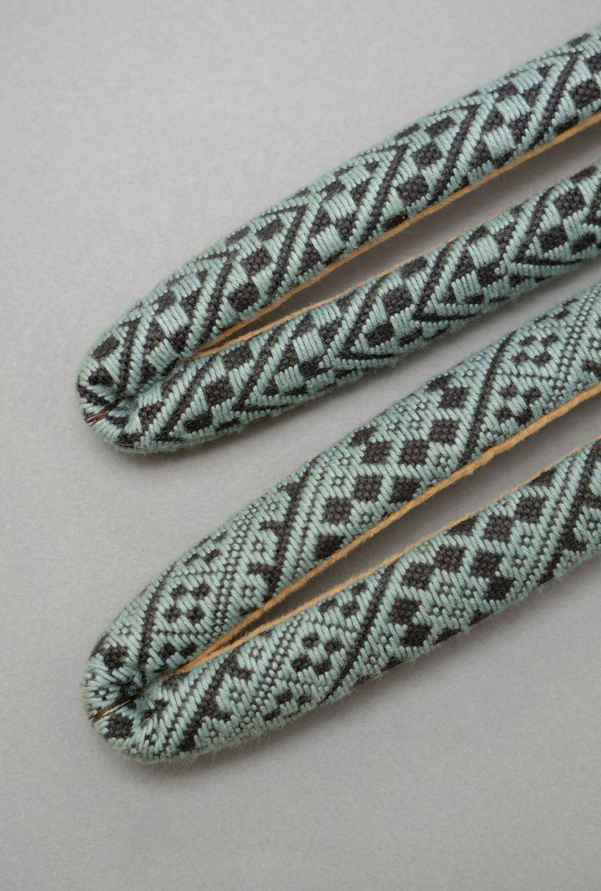 青森県の津軽地方を中心に伝わる刺し子の技法 “こぎん刺し”。 その技法を用いて生地にひと針ひと針、全て手縫いで模様を施し左右ばらばらのちぐはぐな花緒を制作している夏次郎商店。こぎん刺しの模様にはひとつひとつ意味があり、できあがる花緒はすべて一点物。左右の花緒の柄が違うため 入れ替えることもでき、自分だけのHANAO SHOESを楽しめます。