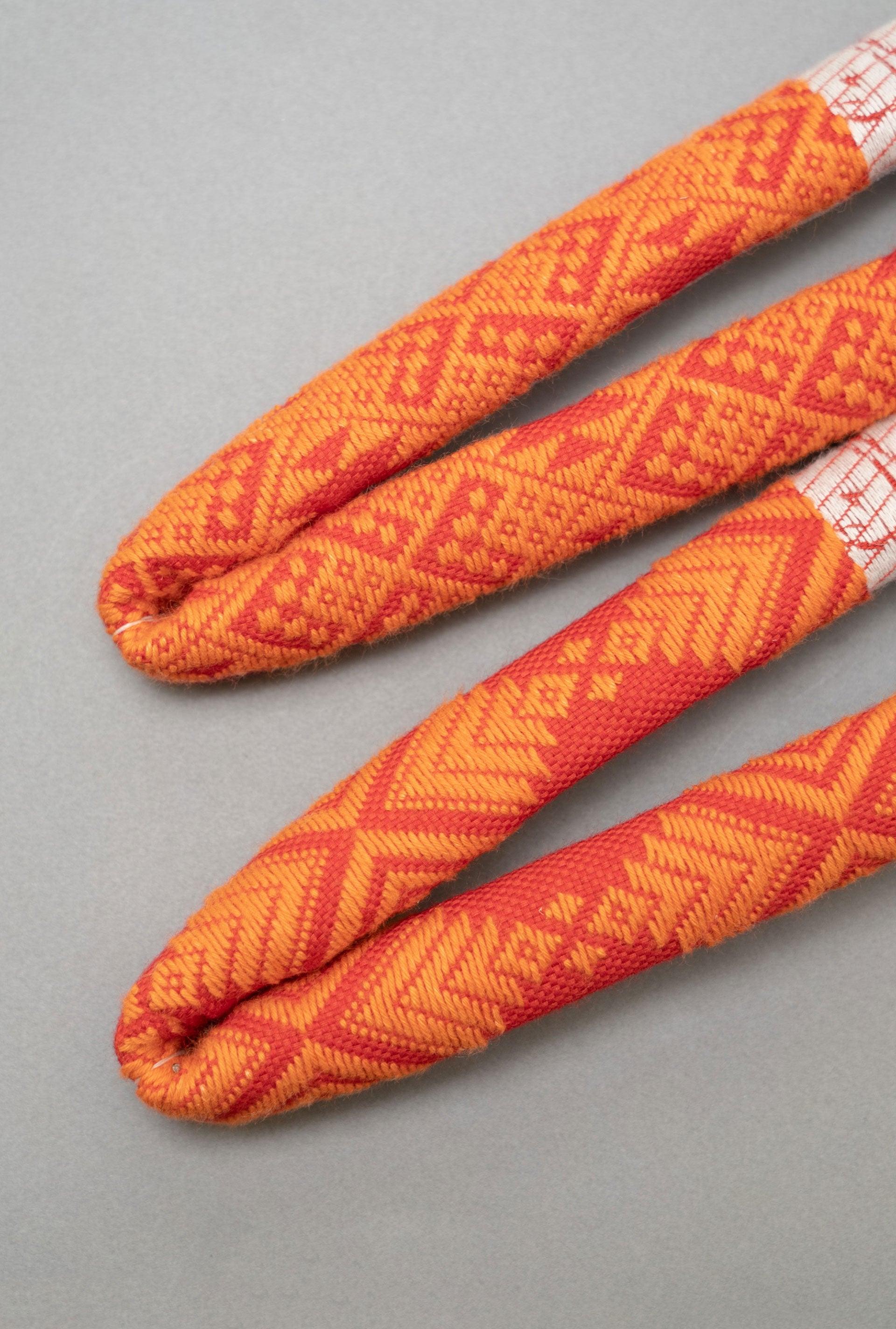 青森県の津軽地方を中心に伝わる刺し子の技法 “こぎん刺し”。 その技法を用いて生地にひと針ひと針、全て手縫いで模様を施し左右ばらばらのちぐはぐな花緒を制作している夏次郎商店。こぎん刺しの模様にはひとつひとつ意味があり、できあがる花緒はすべて一点物。左右の花緒の柄が違うため 入れ替えることもでき、自分だけのHANAO SHOESを楽しめます。