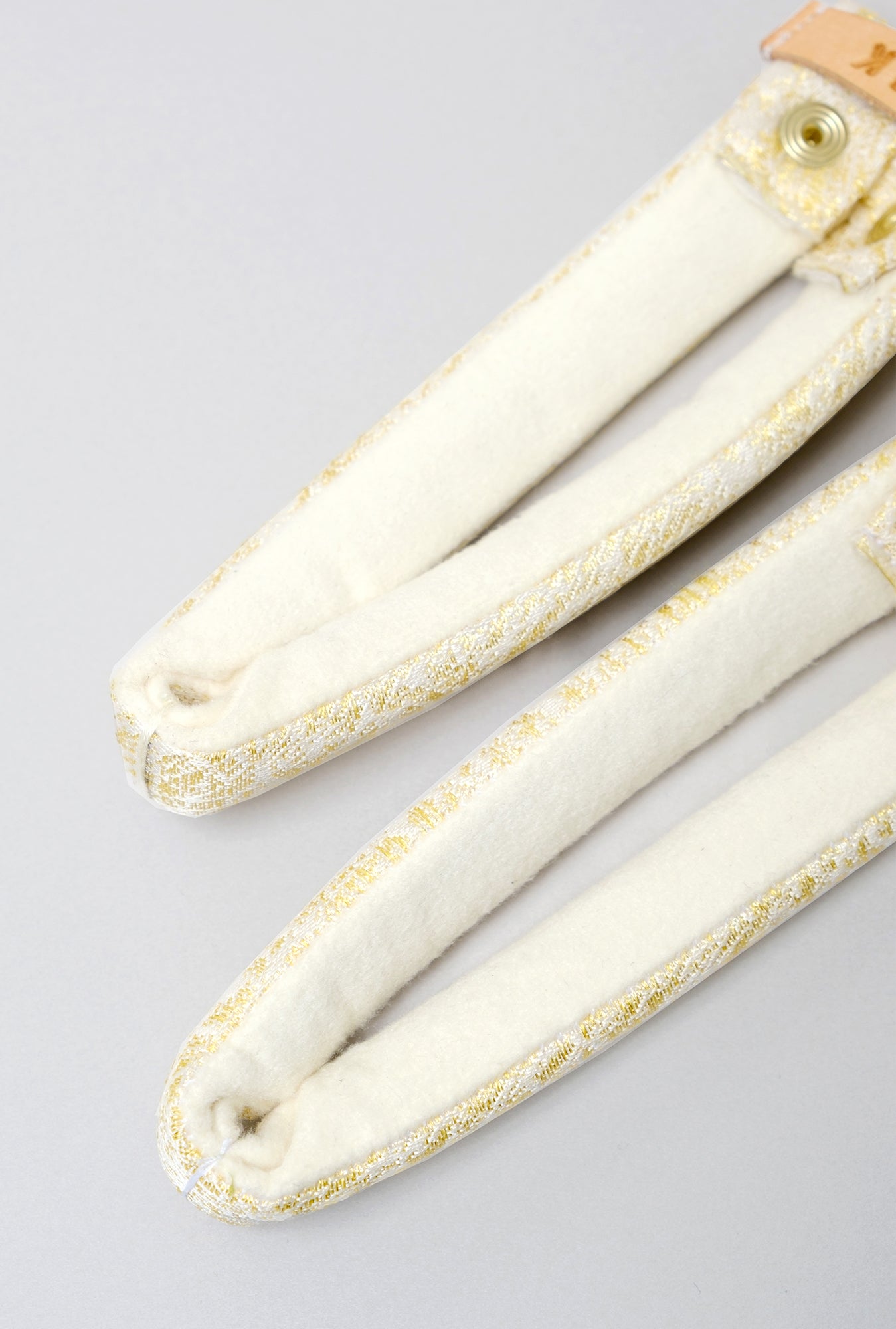 花緒の中に、綿と型紙が入っているため水に濡れると型崩れしてしまいます。長く履き続けるために雨の日や靴を洗う時は、花緒を取り外すことを推奨します。